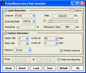 The software cardio-pulmonary cycle analysis plug-in allows the study of human and animal cardio-pulmonary and autonomic functions. It enables using adjustable settings the detection of cycles from any oscillatory signals such as respiratory flow, effort, pulse and arterial pressure captured from various sensors. After a detection of cyclic phases onset, offset, peak and throughs, the software plug-in extract time-varying averaged measures of cycles amplitude and frequency on a epoch per epoch basis.